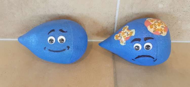 Les gouttes d’eau représentent deux émotions⁵ : la joie et la tristesse. Elles sont utilisées pour expliquer aux enfants la résistance du corps humain dans l’eau grâce à des comptines, des contes.